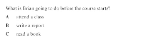 You will have a short time to prepare before the speaker or speakers begin talking. First, read the question very carefully to ensure that you know exactly what you have to do.Particularly note the type of question – single with 3 options or list selection with 2 or more answers to identify.