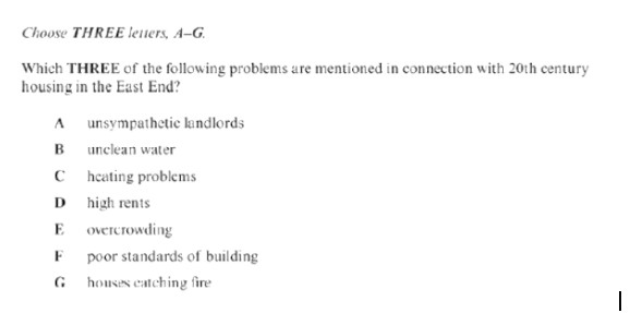 We already know that all the answers in the list will probably be included in the text, so you need to listen carefully to identify the correct ones. Particularly listen out for distractors as the examiners love to try and trick you into picking the wrong answers.